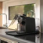 Για αυτοεξυπηρέτηση στην τραπεζαρία προσφέρονται παροχές καφέ και τσαγιού, ψυγείο, μαγειρικά σκεύη.